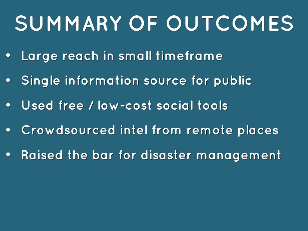 These real-time social media initiatives gained massive amounts of positive community, media and emergency agency feedback.