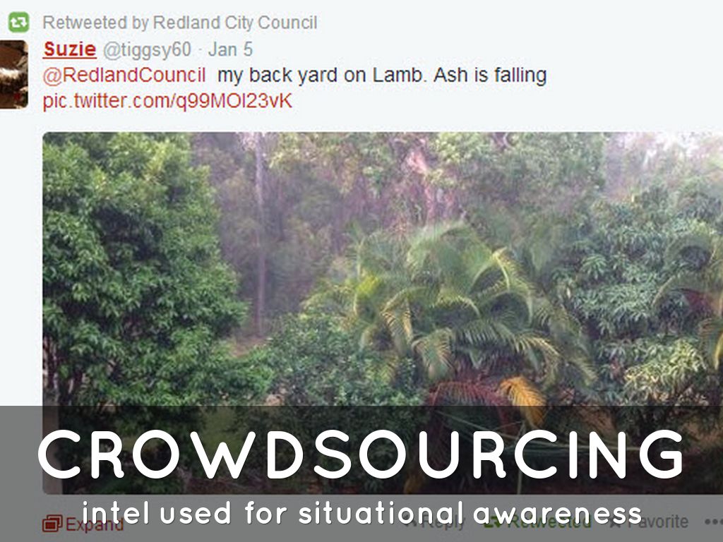 Crowdsourcing intel for situational awareness from your community is another key benefit of using social media. This is especially important when you have remote communities.