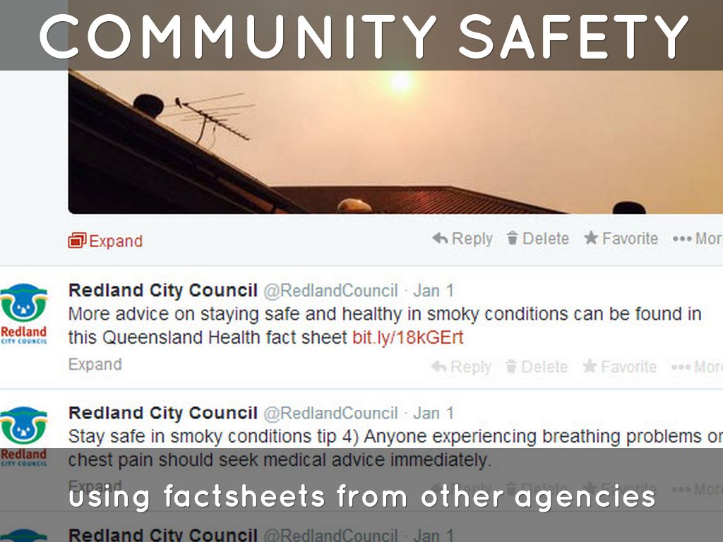 For example, as smoke affected many of our communities, we often linked to the Queensland Health fact sheet "Staying safe and healthy in smoky conditions".