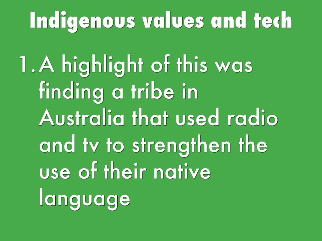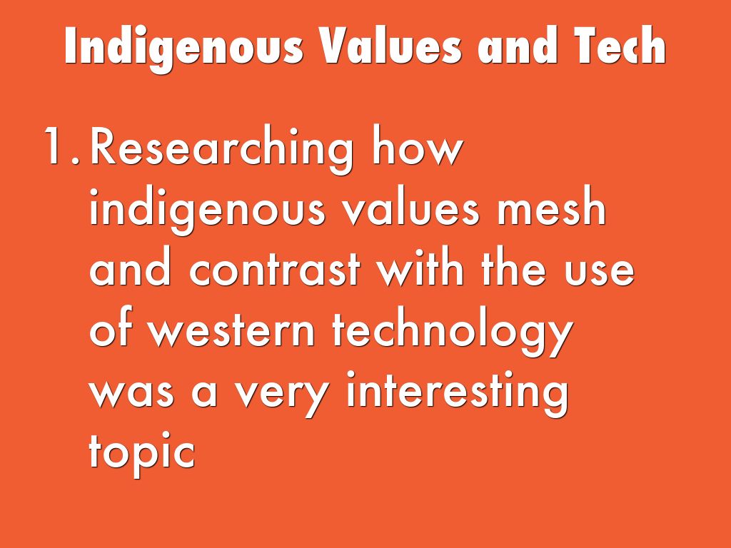 Researching how indigenous values mesh and contrast with the use of western technology was a very interesting topic