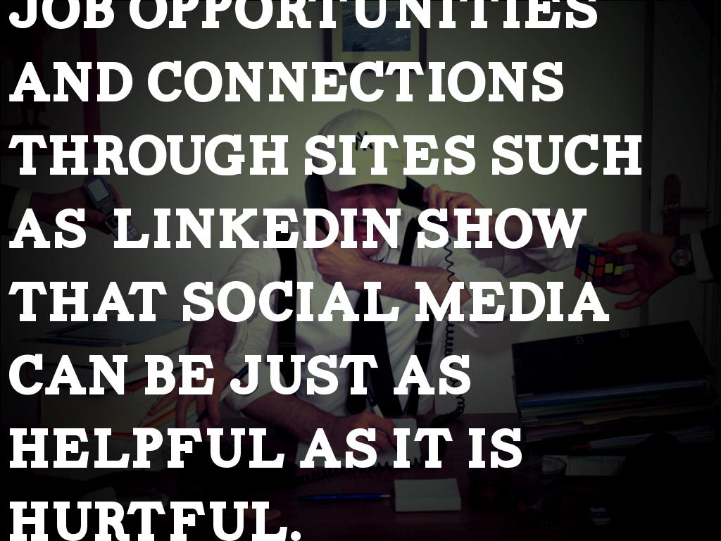 Job opportunities and connections through sites such as LinkedIn show that social media can be just as helpful as it is hurtful.
