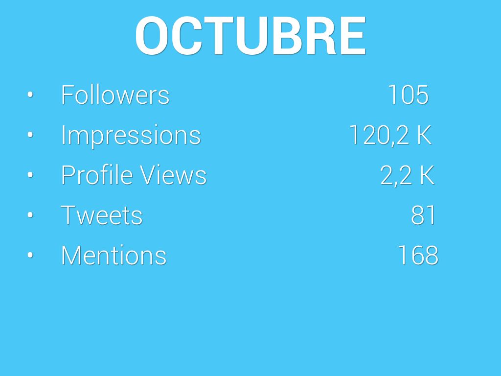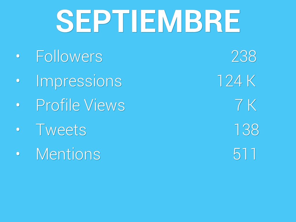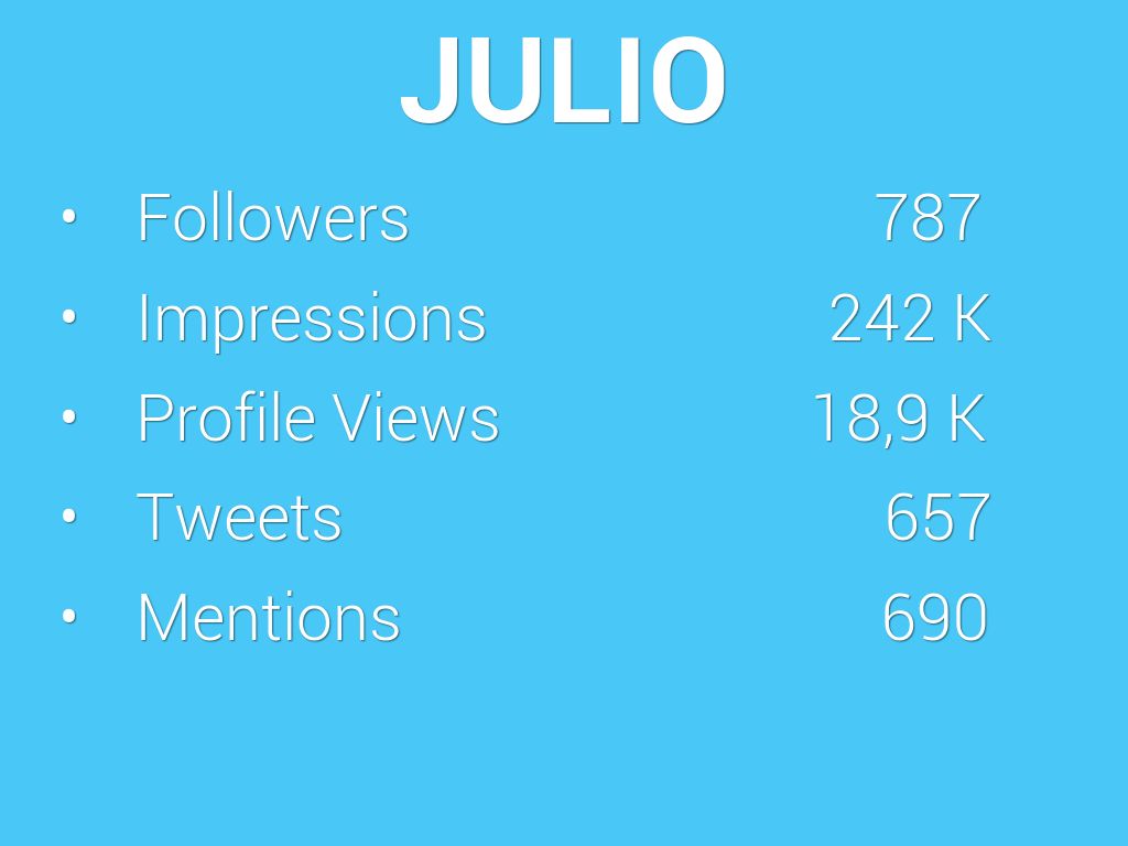 Showcase some of the top tweets you had this past month; you can feature each tweet on a different slide, mention the person who sent the tweet, or capture screenshots of those tweets and import them into each slide.