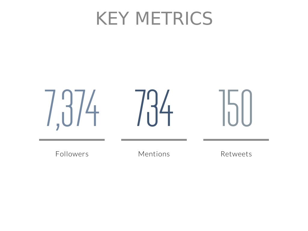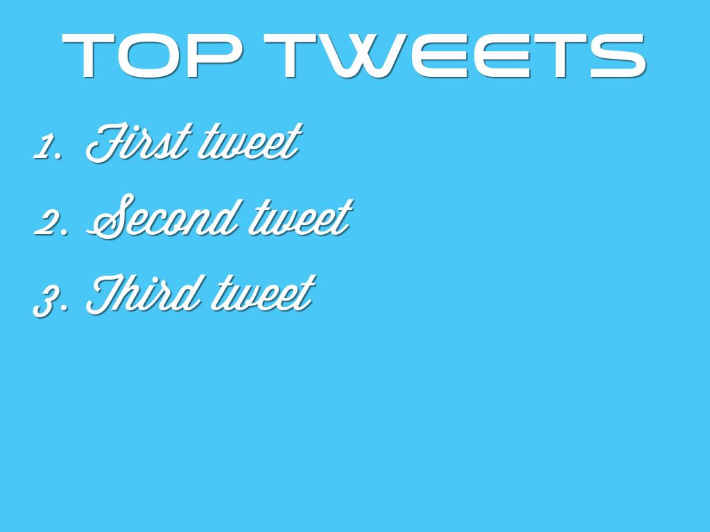 Showcase some of the top tweets you had this past month; you can feature each tweet on a different slide, mention the person who sent the tweet, or capture screenshots of those tweets and import them into each slide.
