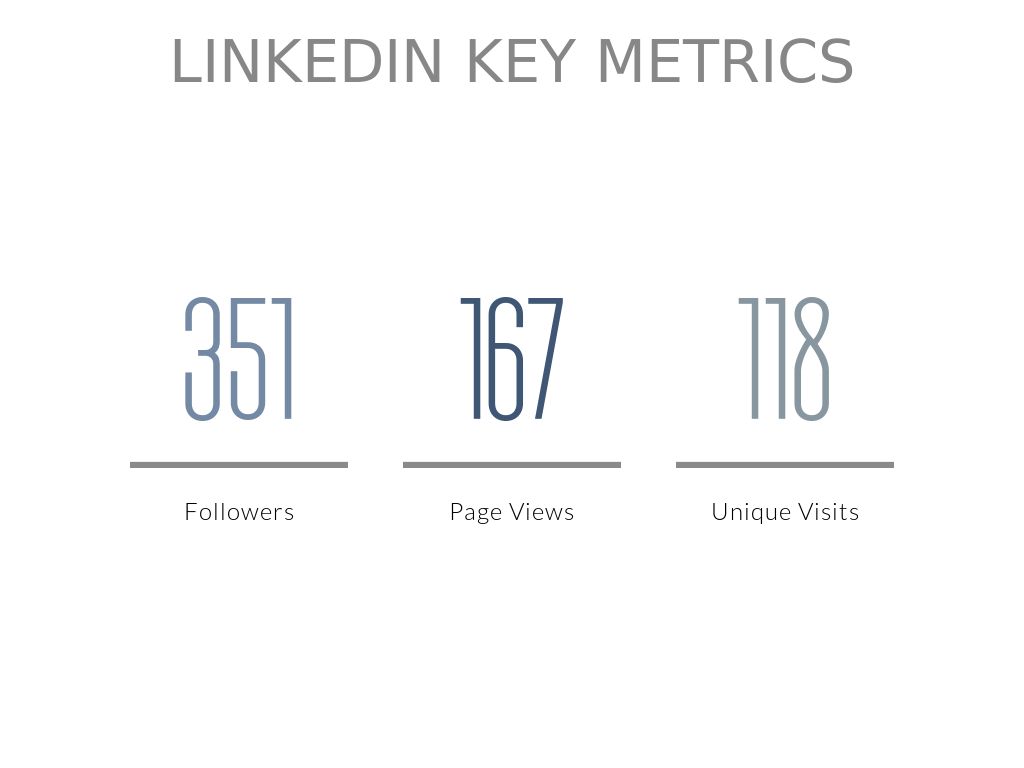 Use the stat chart to illustrate the key metrics you measure each month. You can feature different metrics than the ones mentioned here.