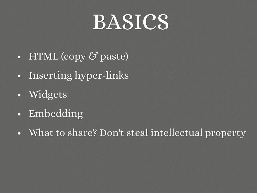 • What to share? Don't steal intellectual property