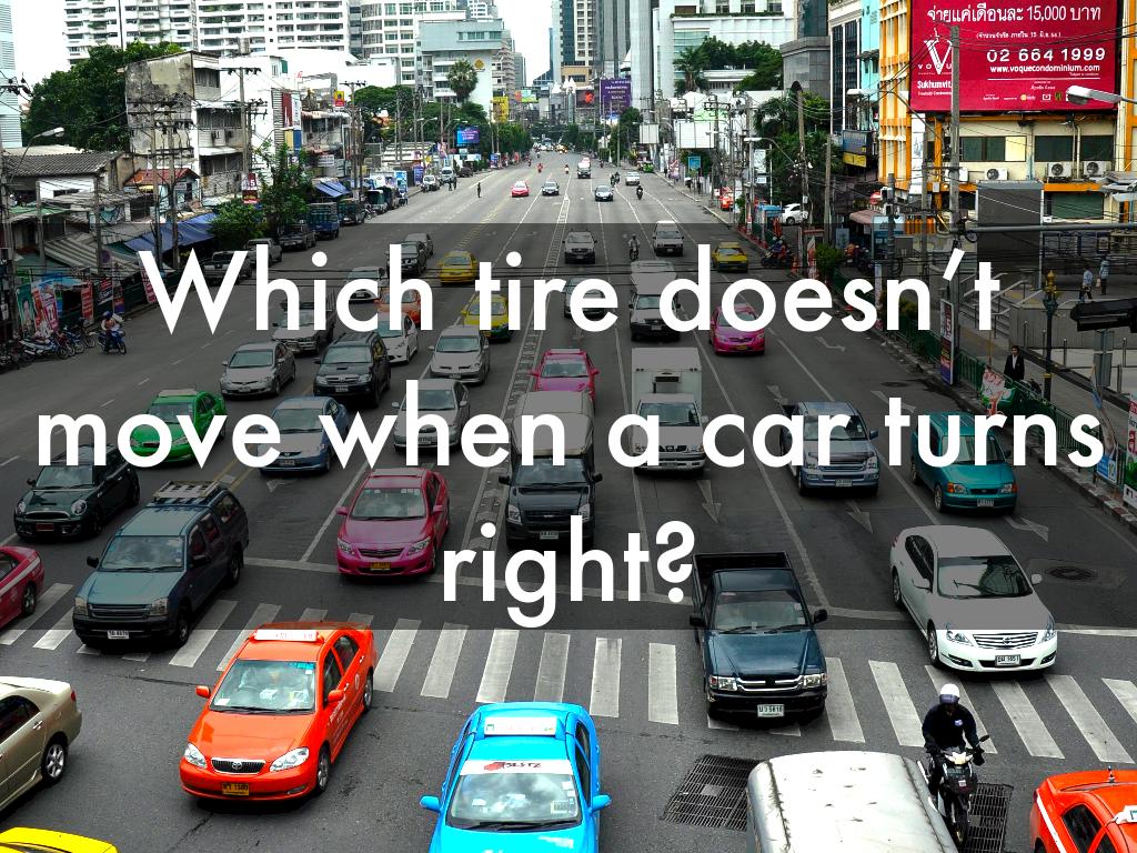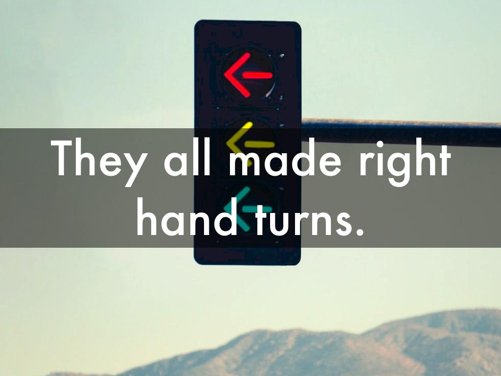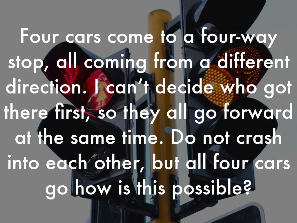 Four cars come to a four-way stop, all coming from a different direction. I can’t decide who got there first, so they all go forward at the same time. Do not crash into each other, but all four cars go how is this possible?