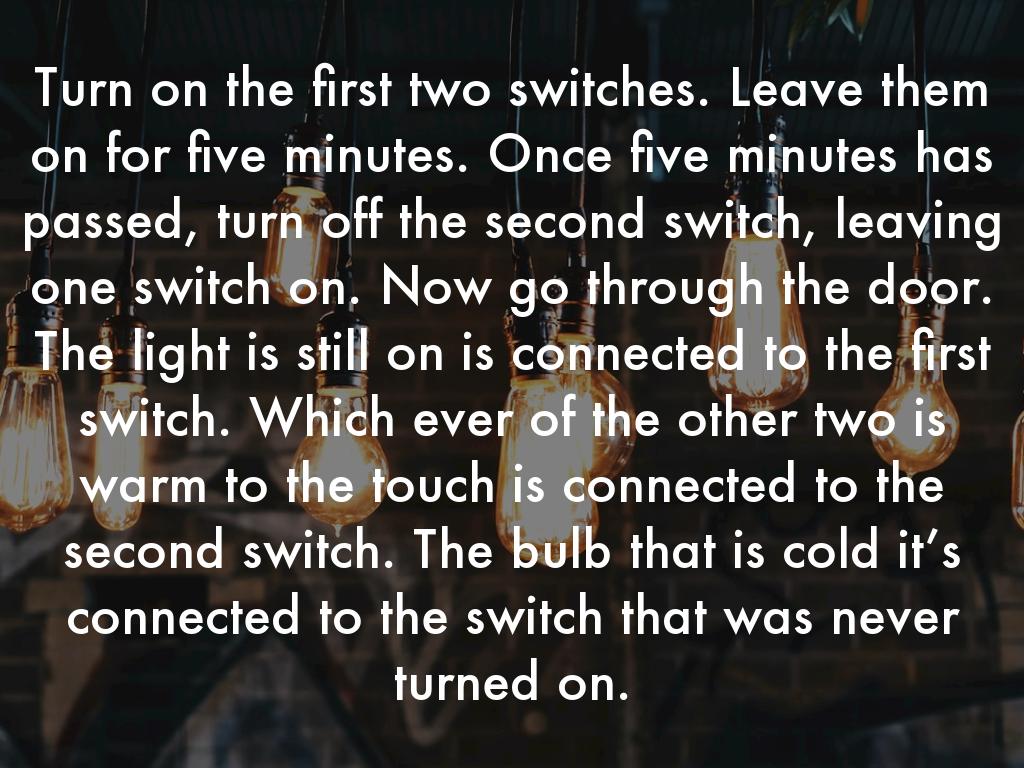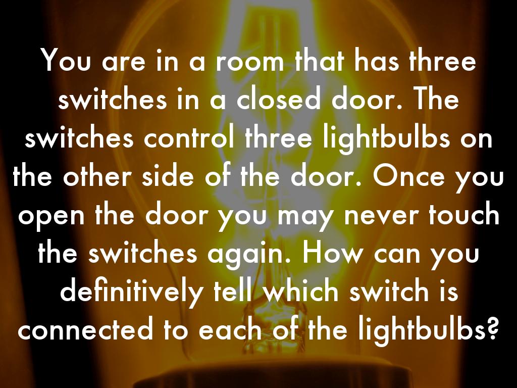 You are in a room that has three switches in a closed door. The switches control three lightbulbs on the other side of the door. Once you open the door you may never touch the switches again. How can you definitively tell which switch is connected to each of the lightbulbs?
