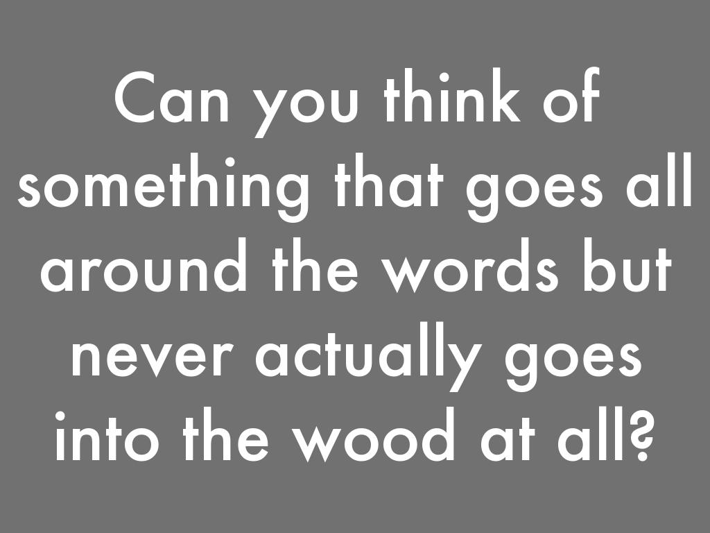 Can you think of something that goes all around the words but never actually goes into the wood at all?