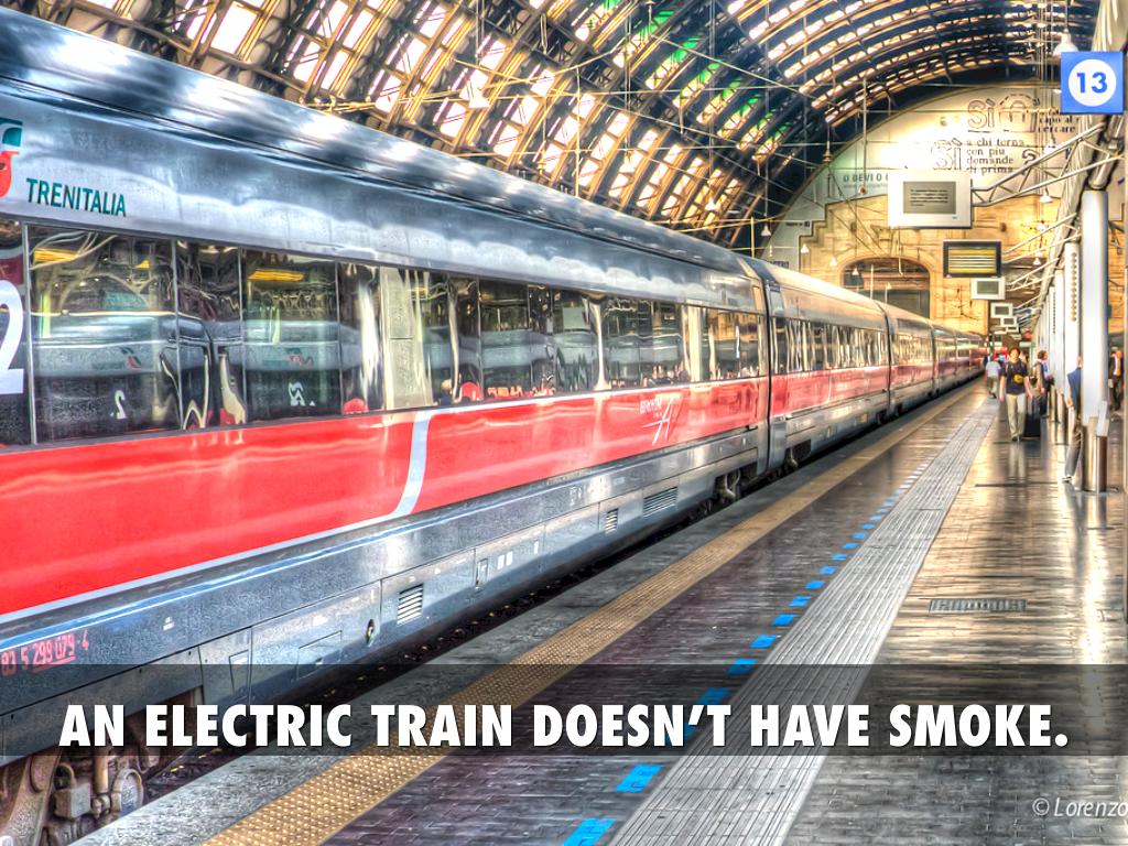 AN ELECTRIC TRAIN DOESN’T HAVE SMOKE.