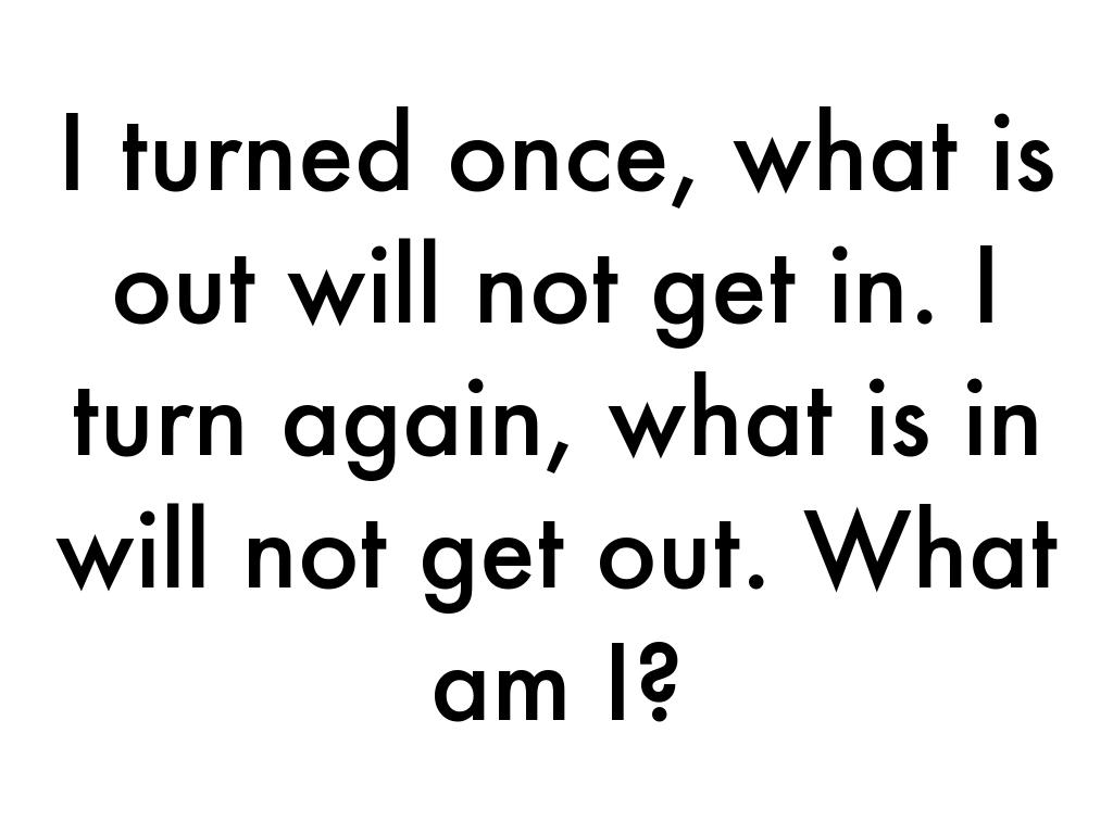 I turned once, what is out will not get in. I turn again, what is in will not get out. What am I?