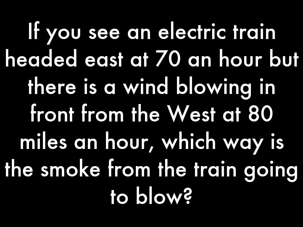If you see an electric train headed east at 70 an hour but there is a wind blowing in front from the West at 80 miles an hour, which way is the smoke from the train going to blow?