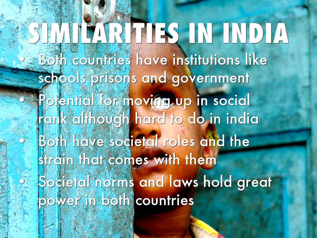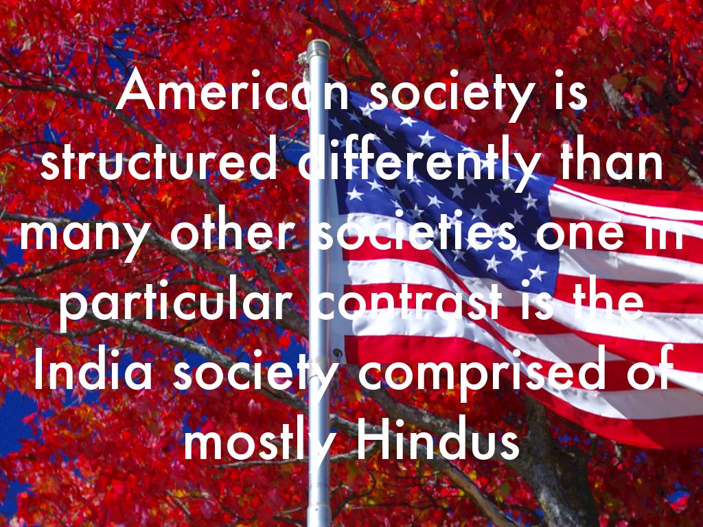 American society is structured differently than many other societies one in particular contrast is the India society comprised of mostly Hindus