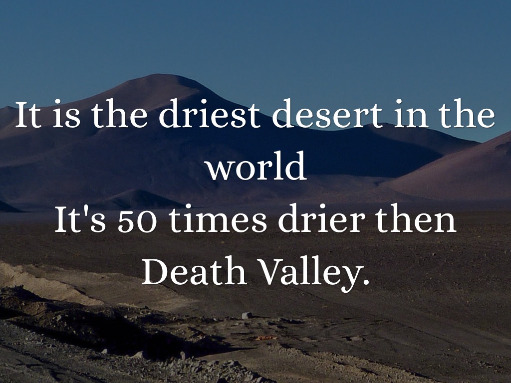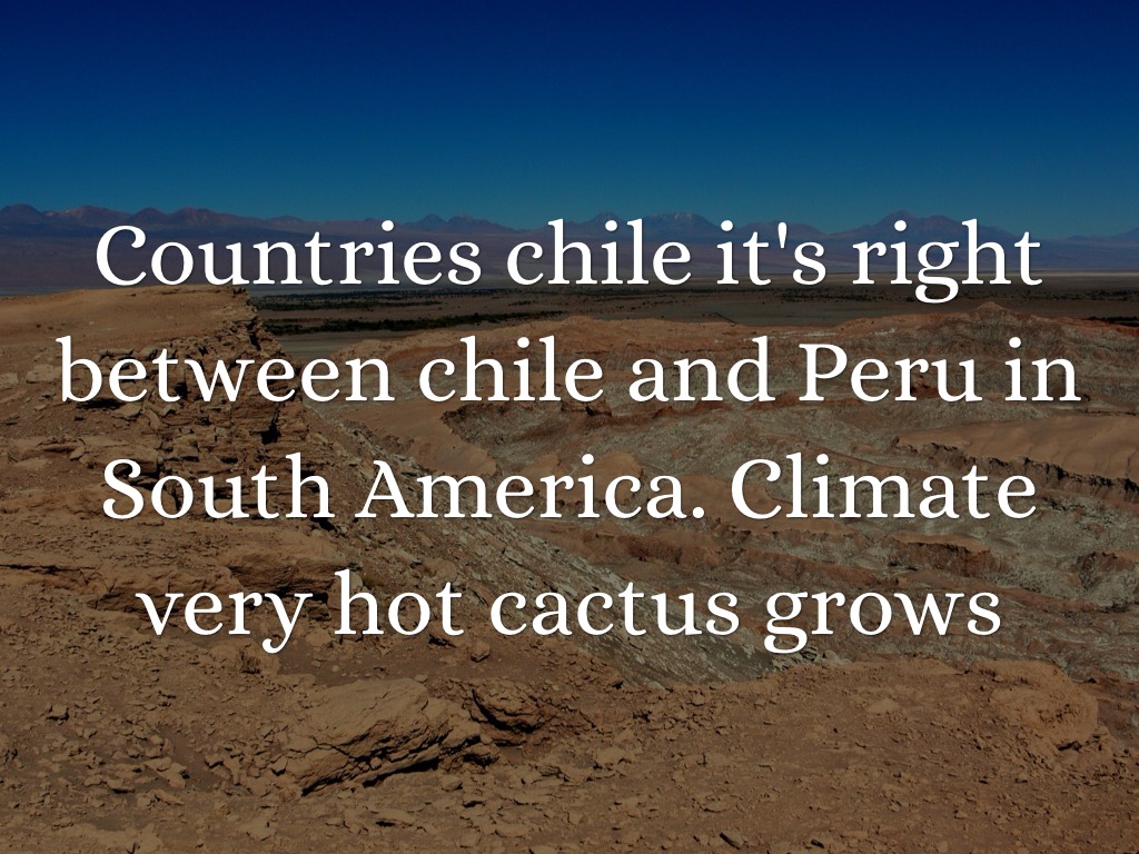 Countries chile it's right between chile and Peru in South America. Climate very hot cactus grows