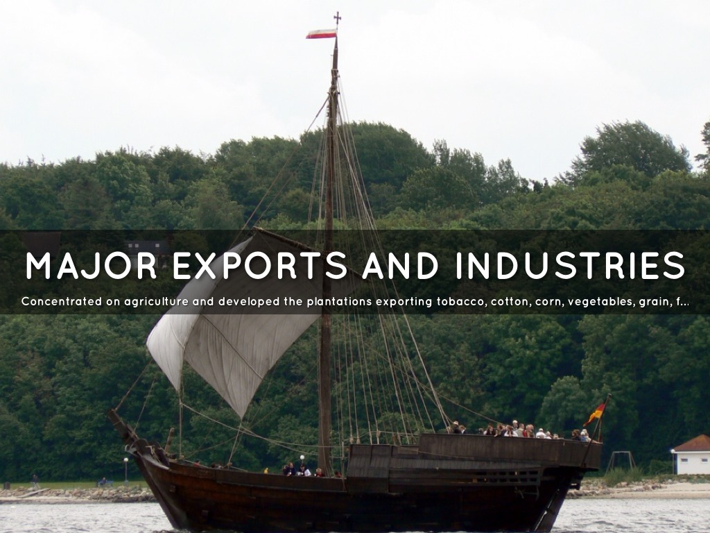 Concentrated on agriculture and developed the plantations exporting tobacco, cotton, corn, vegetables, grain, fruit and livestock