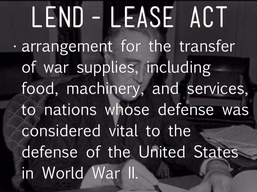 arrangement for the transfer of war supplies, including food, machinery, and services, to nations whose defense was considered vital to the defense of the United States in World War II.