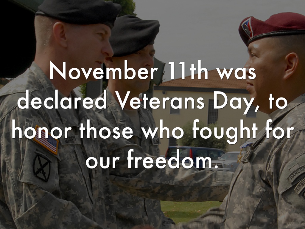 November 11th was declared Veterans Day, to honor those who fought for our freedom.
