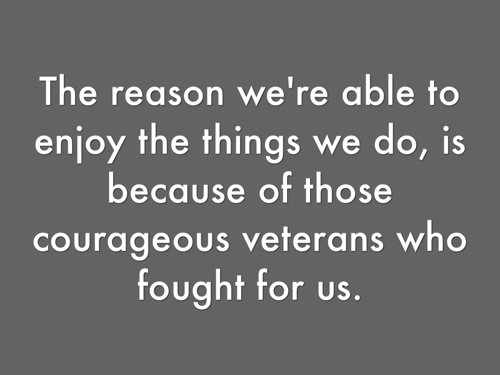 The reason we're able to enjoy the things we do, is because of those courageous veterans who fought for us.