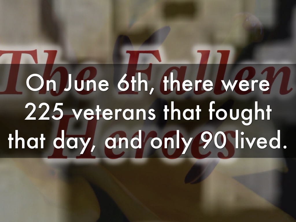 On June 6th, there were 225 veterans that fought that day, and only 90 lived.