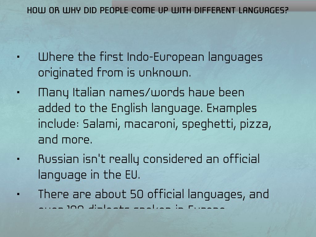 Where the first Indo-European languages originated from is unknown.