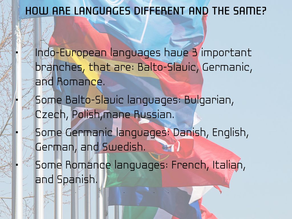 Indo-European languages have 3 important branches, that are: Balto-Slavic, Germanic, and Romance.