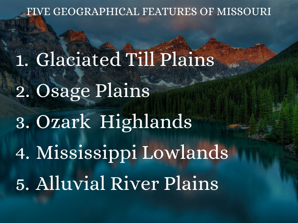 FIVE GEOGRAPHICAL FEATURES OF MISSOURI