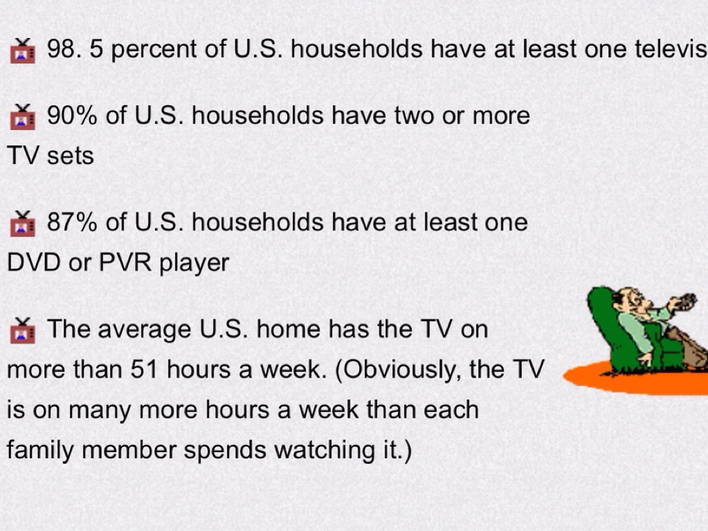 - Children who watch 10 or more hours of tv per week, suffer academically