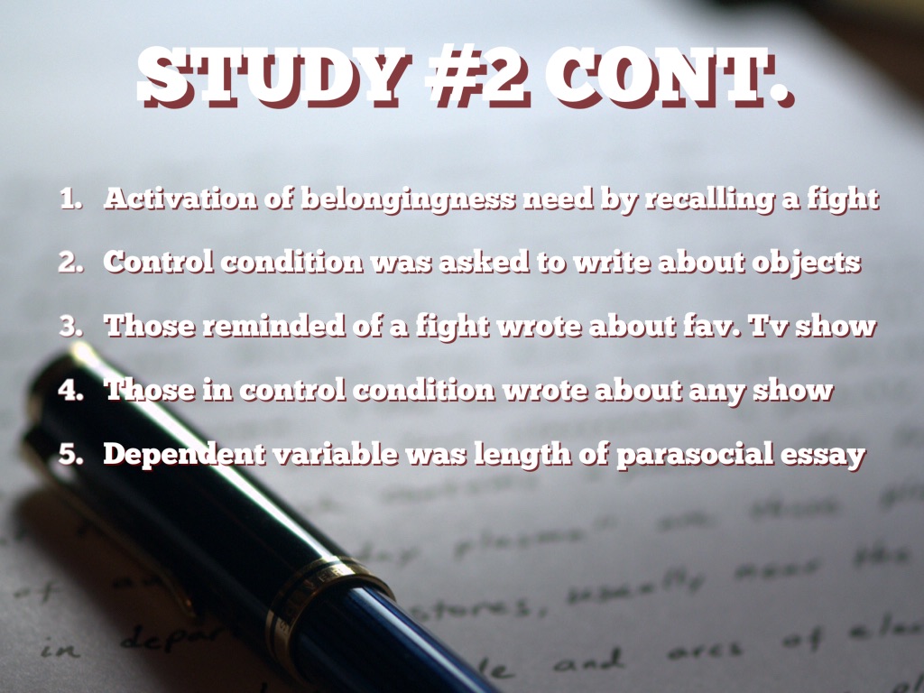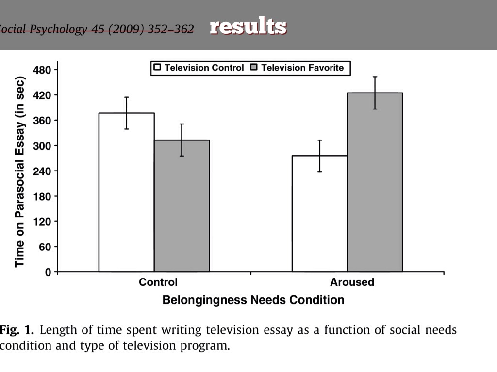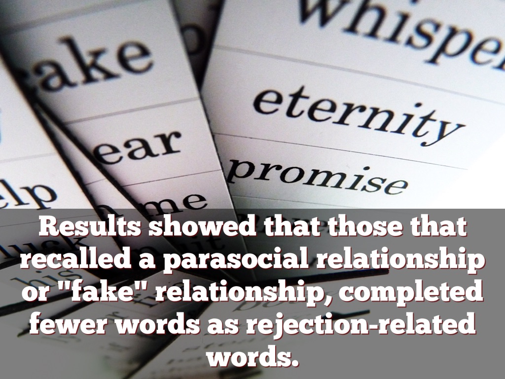 Results showed that those that recalled a parasocial relationship or "fake" relationship, completed fewer words as rejection-related words.