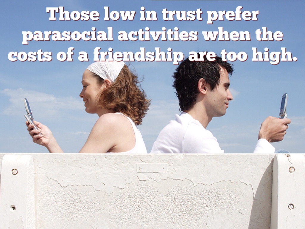 Those low in trust prefer parasocial activities when the costs of a friendship are too high.