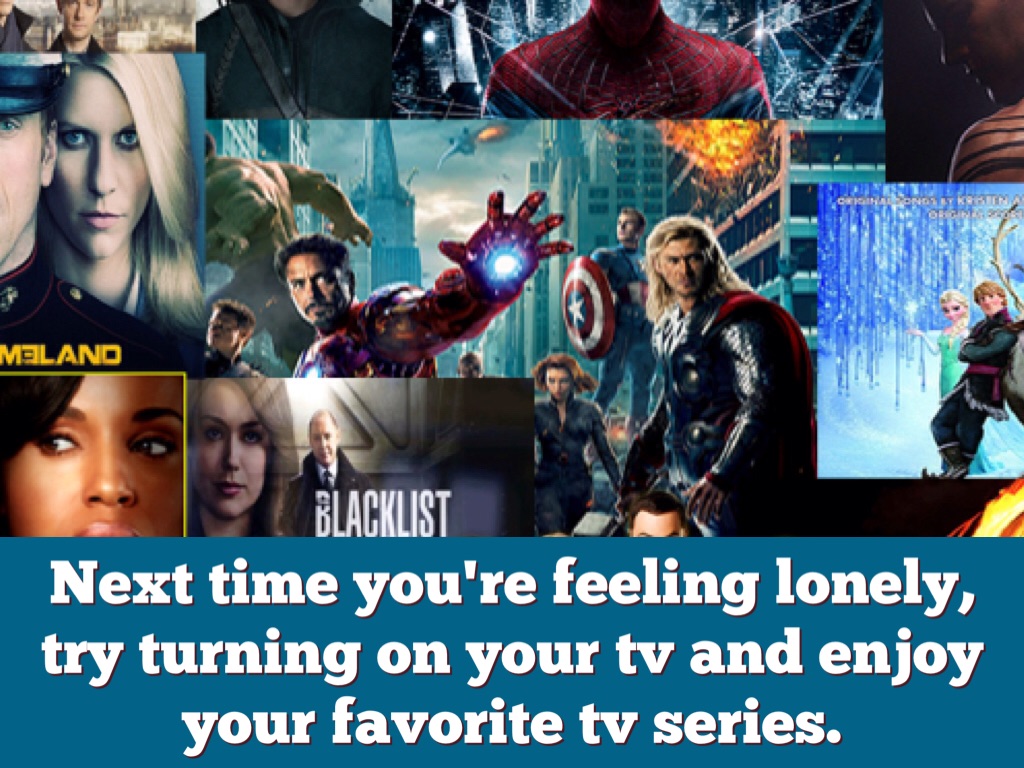Next time you're feeling lonely, try turning on your tv and enjoy your favorite tv series.