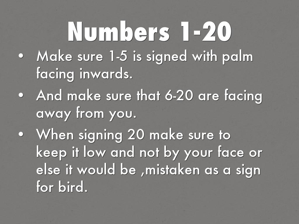 When signing 20 make sure to keep it low and not by your face or else it would be ,mistaken as a sign for bird.