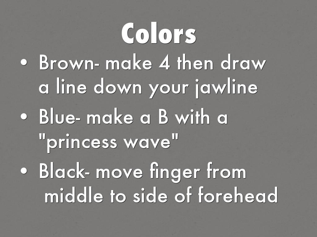Blue- make a B with a "princess wave"