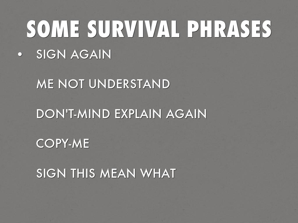 SIGN AGAIN ME NOT UNDERSTAND DON'T-MIND EXPLAIN AGAIN COPY-ME SIGN THIS MEAN WHAT SLOW PLEASE ME #DO-DO WHAT ME WANT TALK LATER HOMEWORK WHAT