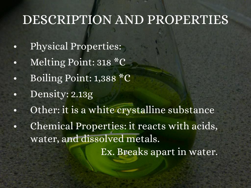 How the Compound is obtained, made, synthesized, etc: it is made by the electrolysis of dry molten.