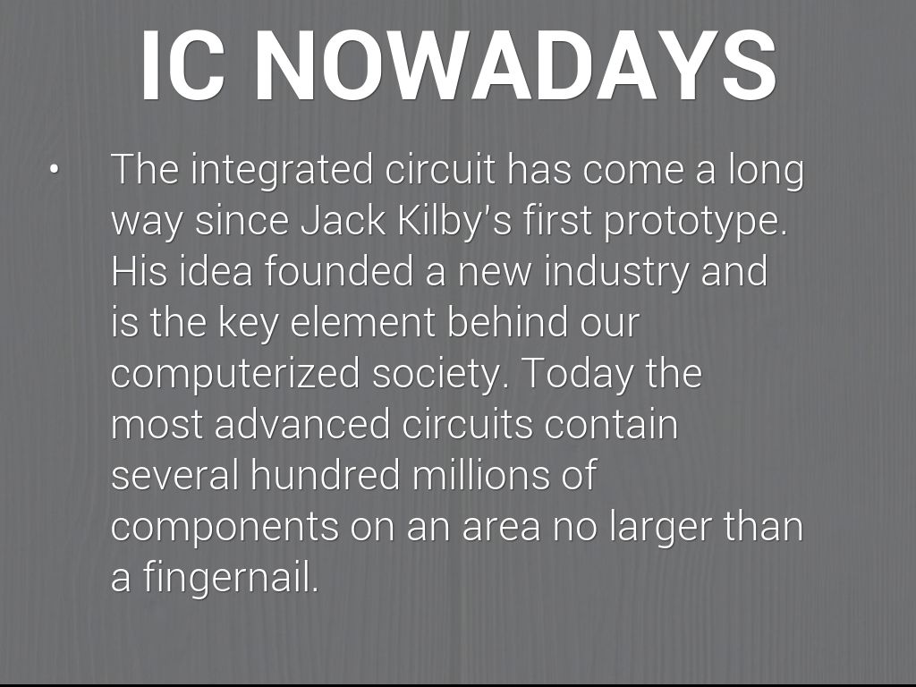 The integrated circuit has come a long way since Jack Kilby's first prototype. His idea founded a new industry and is the key element behind our computerized society. Today the most advanced circuits contain several hundred millions of components on an area no larger than a fingernail.