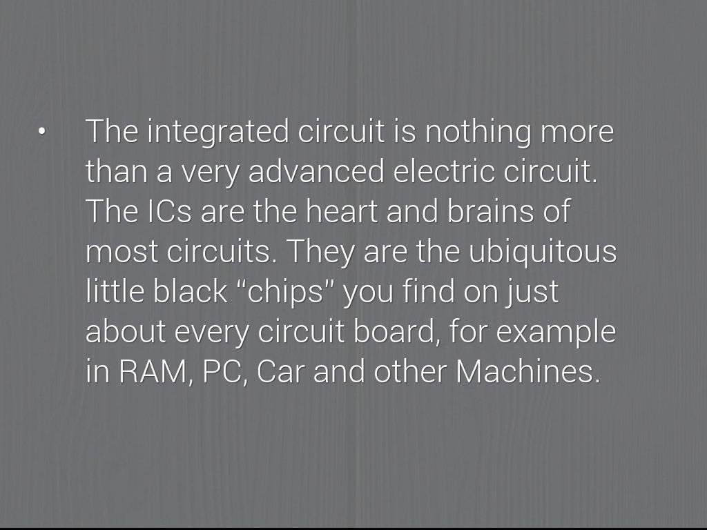 The ICs are the heart and brains of most circuits. They are the ubiquitous little black “chips” you find on just about every circuit board, for example in RAM, PC, Car and other Machines.