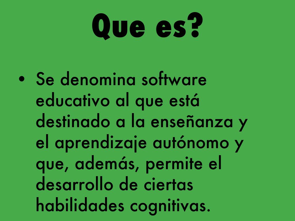 - Se denomina software educativo al que está destinado a la enseñanza y el aprendizaje autónomo y que, además, permite el desarrollo de ciertas habilidades cognitivas.
