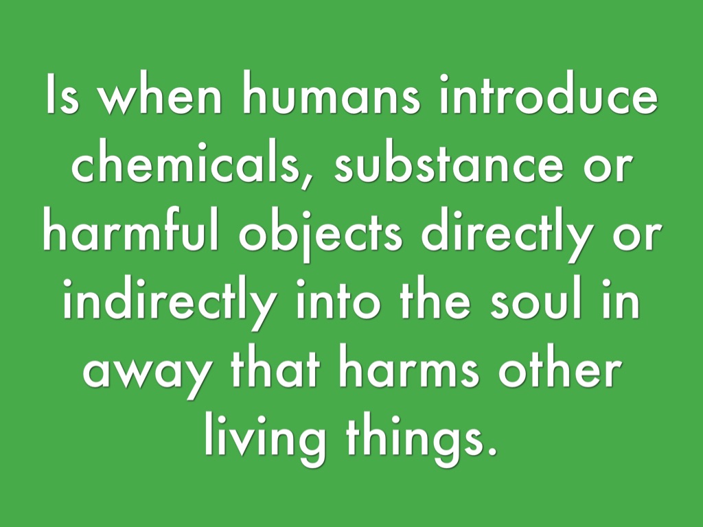 Is when humans introduce chemicals, substance or harmful objects directly or indirectly into the soul in away that harms other living things.