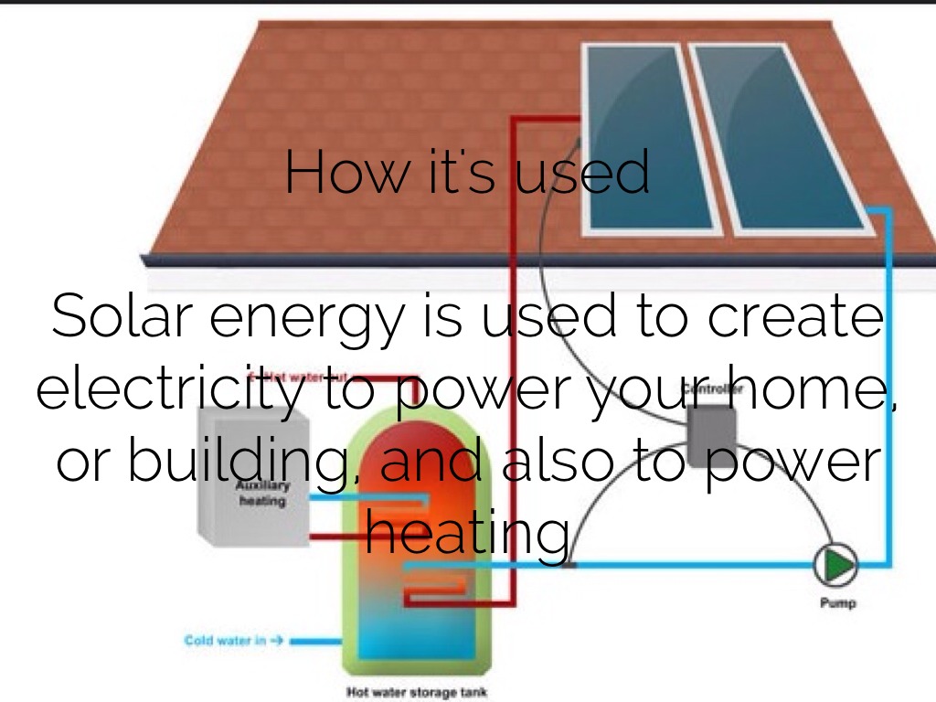 Solar energy is used to create electricity to power your home, or building, and also to power heating