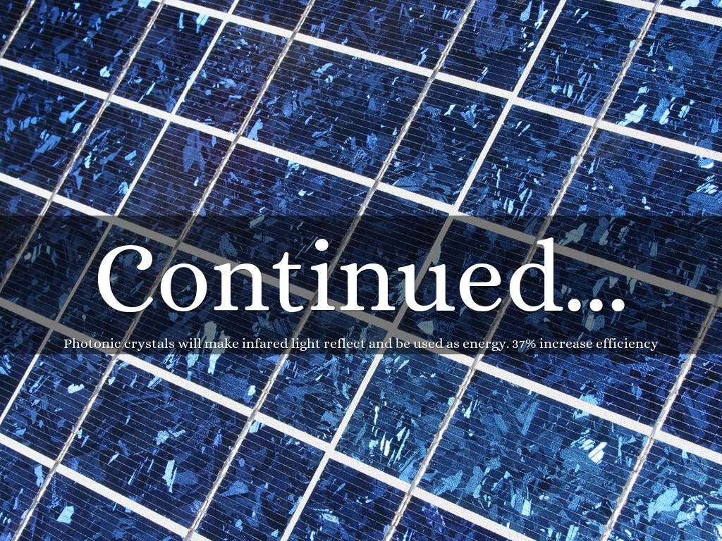 Photonic crystals will make infared light reflect and be used as energy. 37% increase efficiency