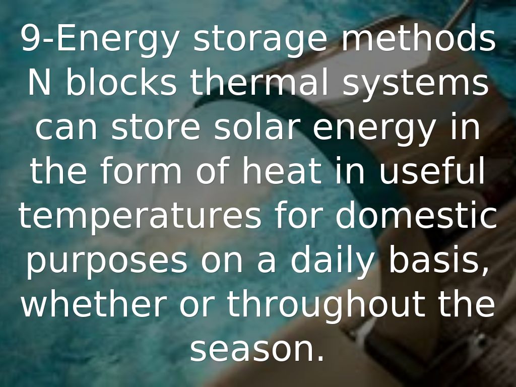 N blocks thermal systems can store solar energy in the form of heat in useful temperatures for domestic purposes on a daily basis, whether or throughout the season.