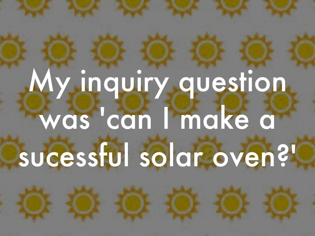 My inquiry question was 'can I make a sucessful solar oven?'