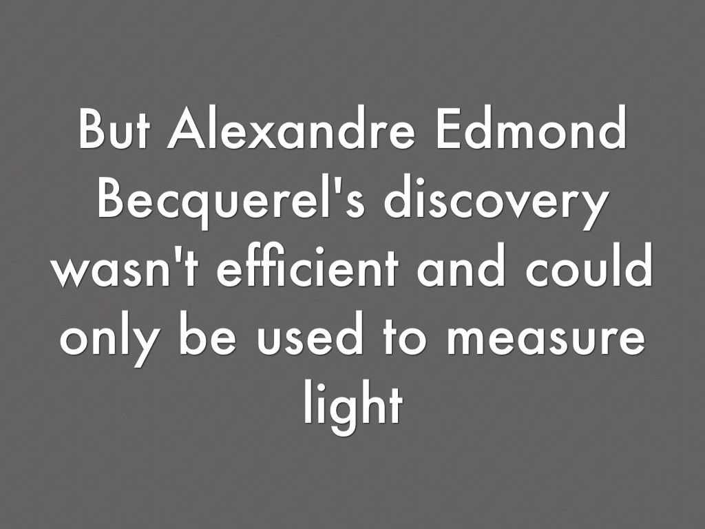 But Alexandre Edmond Becquerel's discovery wasn't efficient and could only be used to measure light