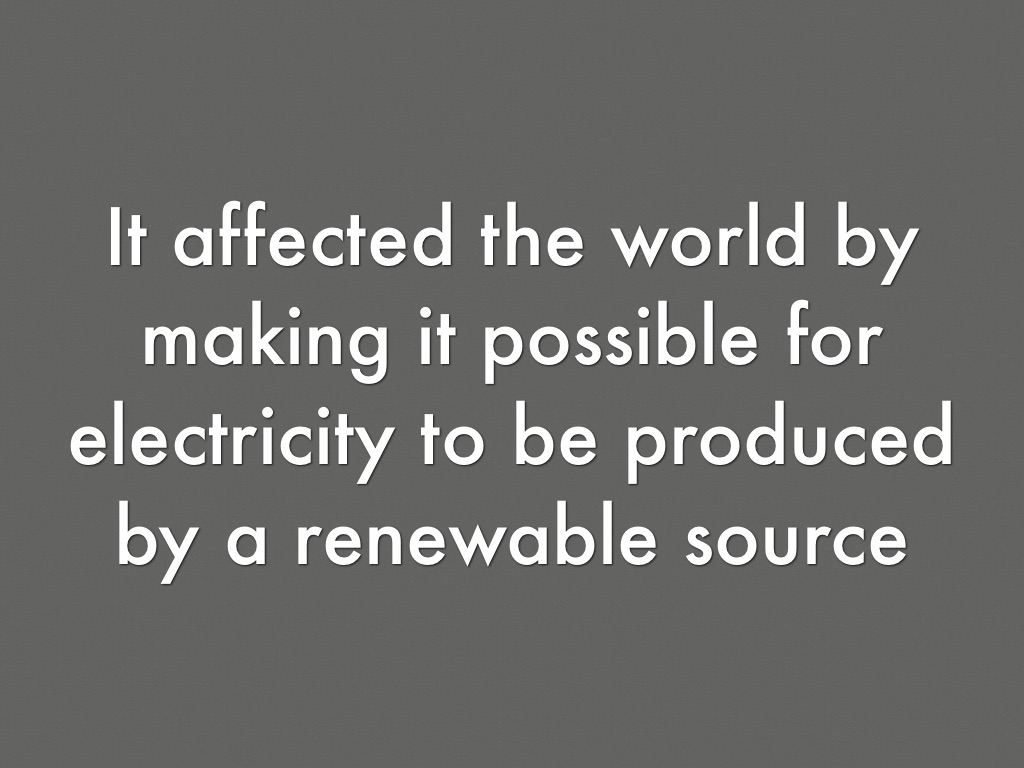 It affected the world by making it possible for electricity to be produced by a renewable source