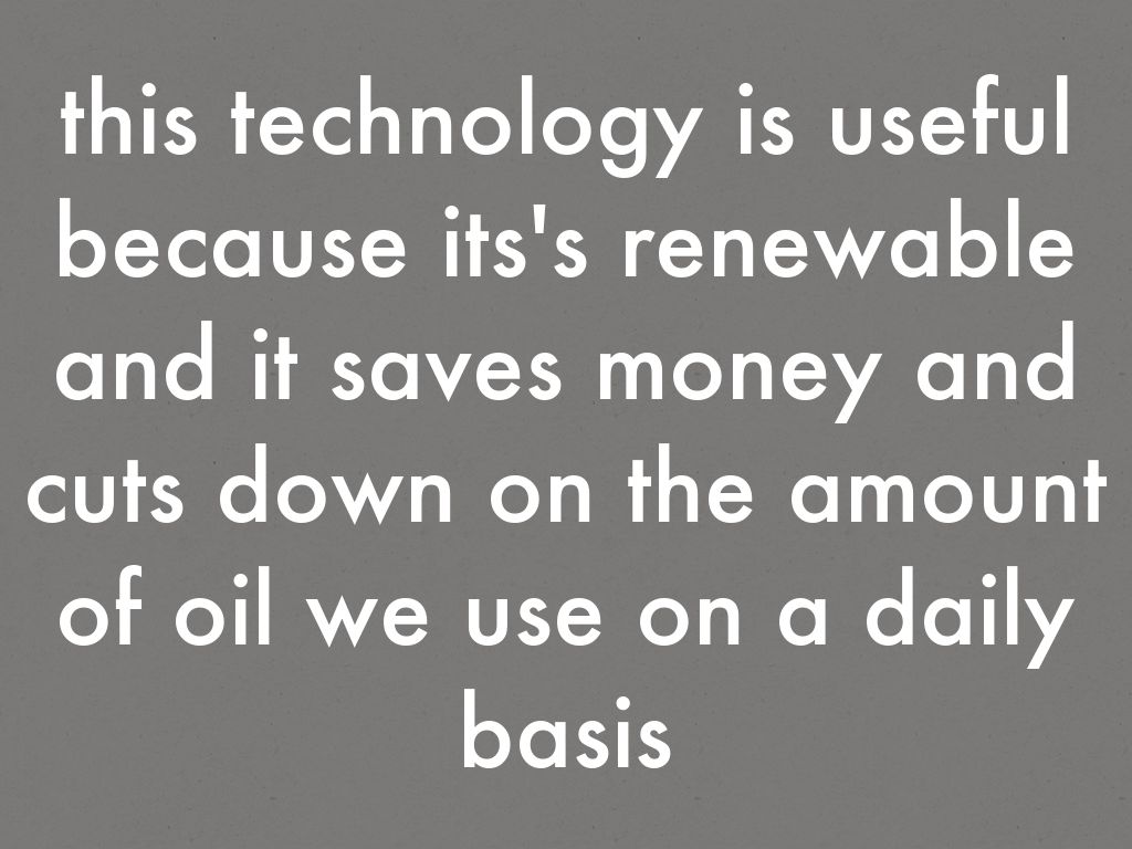 this technology is useful because its's renewable and it saves money and cuts down on the amount of oil we use on a daily basis