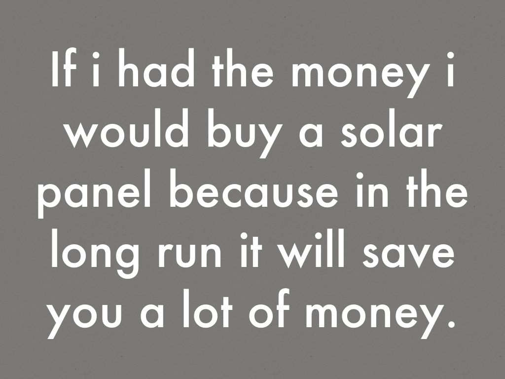 If i had the money i would buy a solar panel because in the long run it will save you a lot of money.