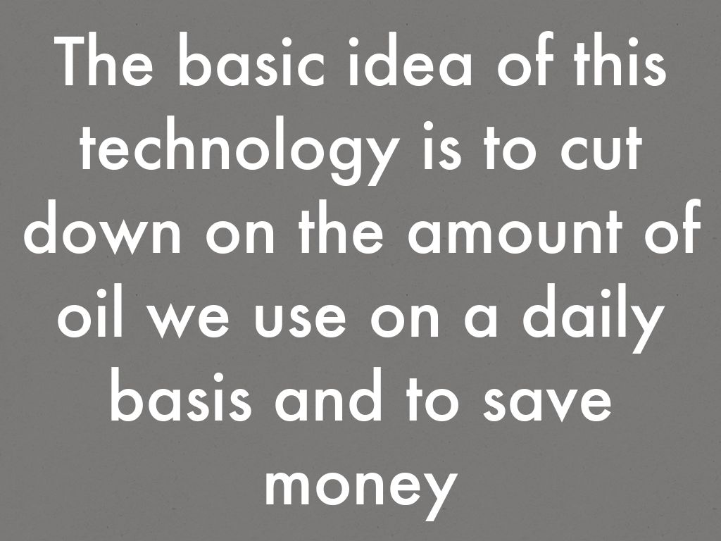 The basic idea of this technology is to cut down on the amount of oil we use on a daily basis and to save money