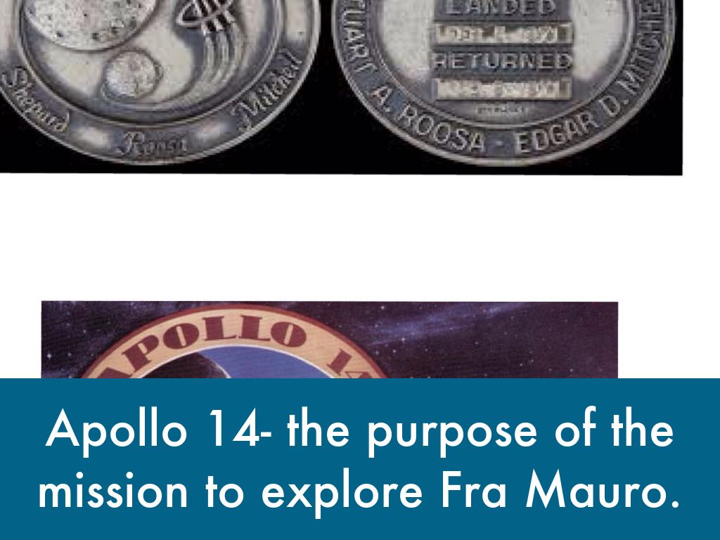 Apollo 14- the purpose of the mission to explore Fra Mauro.