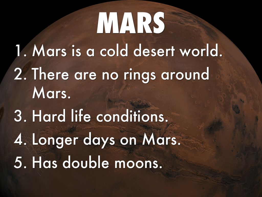 Mars mission- the purpose for this mission was to see if there was life in Mars.