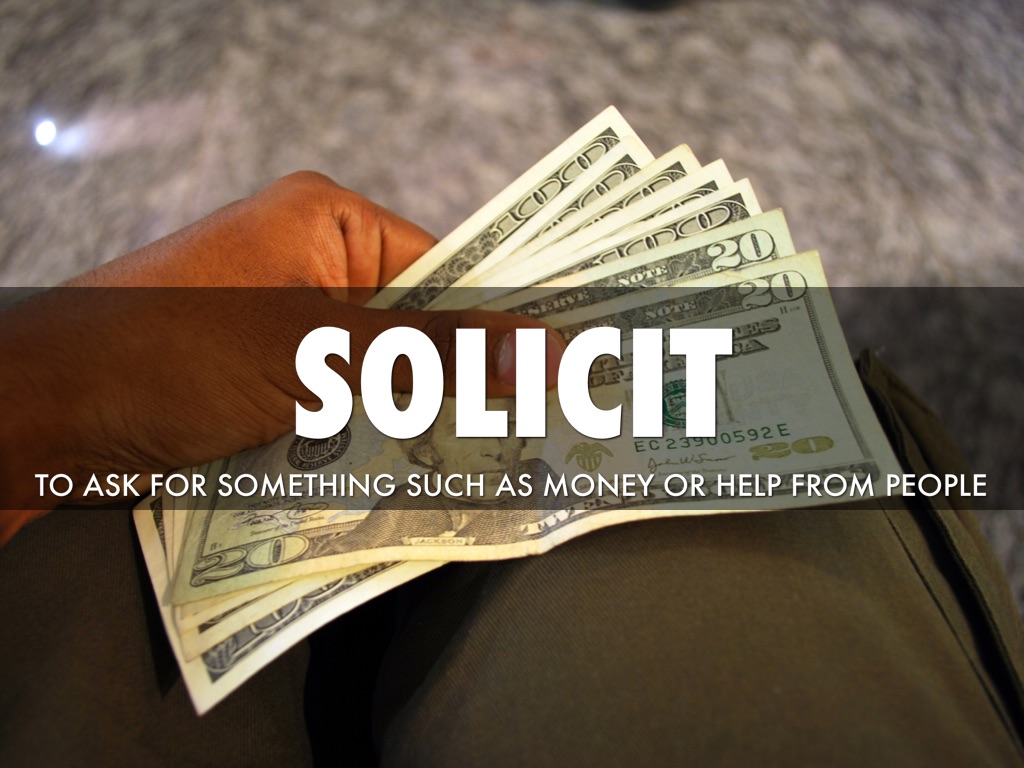 TO ASK FOR SOMETHING SUCH AS MONEY OR HELP FROM PEOPLe