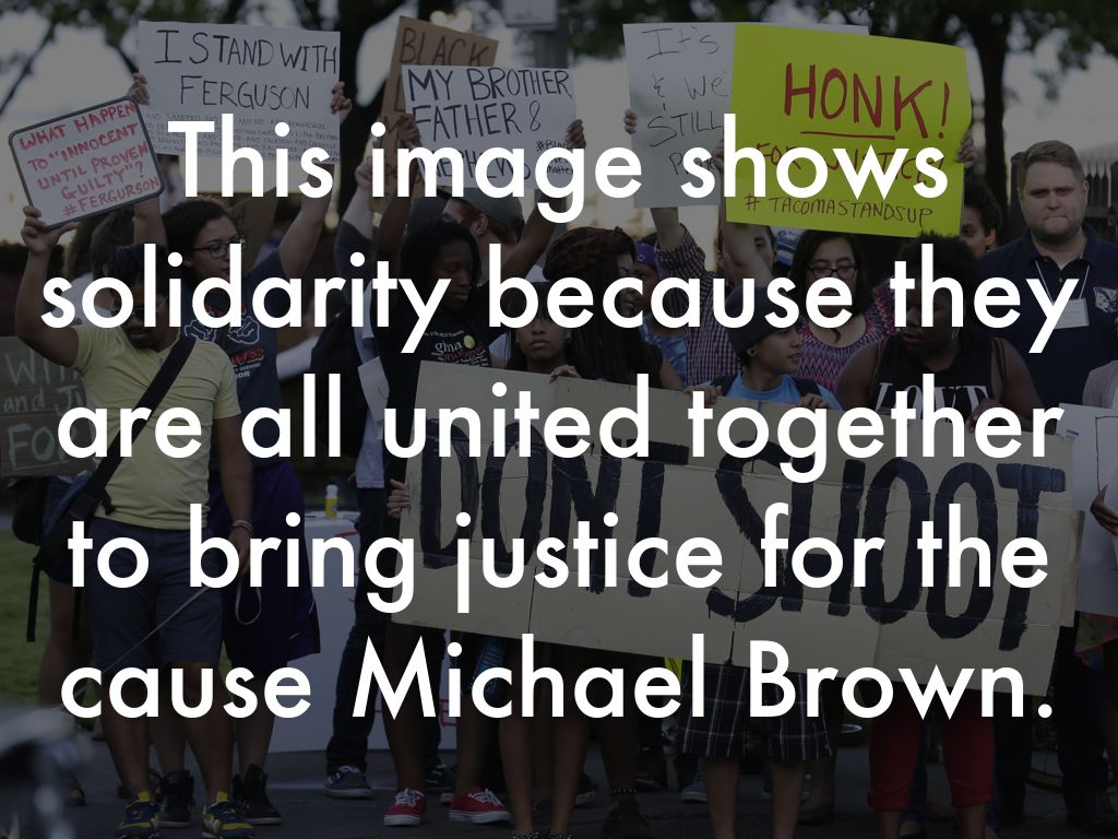 This image shows solidarity because they are all united together to bring justice for the cause Michael Brown.